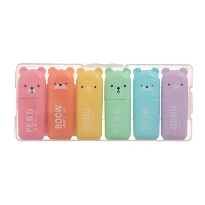 Набор из шести пастельных текстовыделителей с забавным дизайном превращает рутинное выделение текста в небольшое удовольствие. Нежные, спокойные оттенки мягко подсвечивают информацию на странице, не создавая резкого контраста. Каждый маркер в наборе оснащён скошенным наконечником для аккуратной работы.