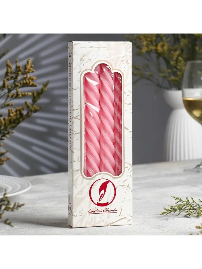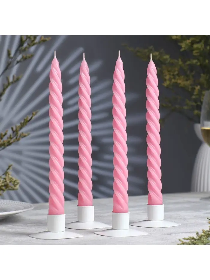 Набор свечей витых, 2.3×24.5 см, 5 ч, 50 г, 4 шт., св. розовый, в подарочной коробке