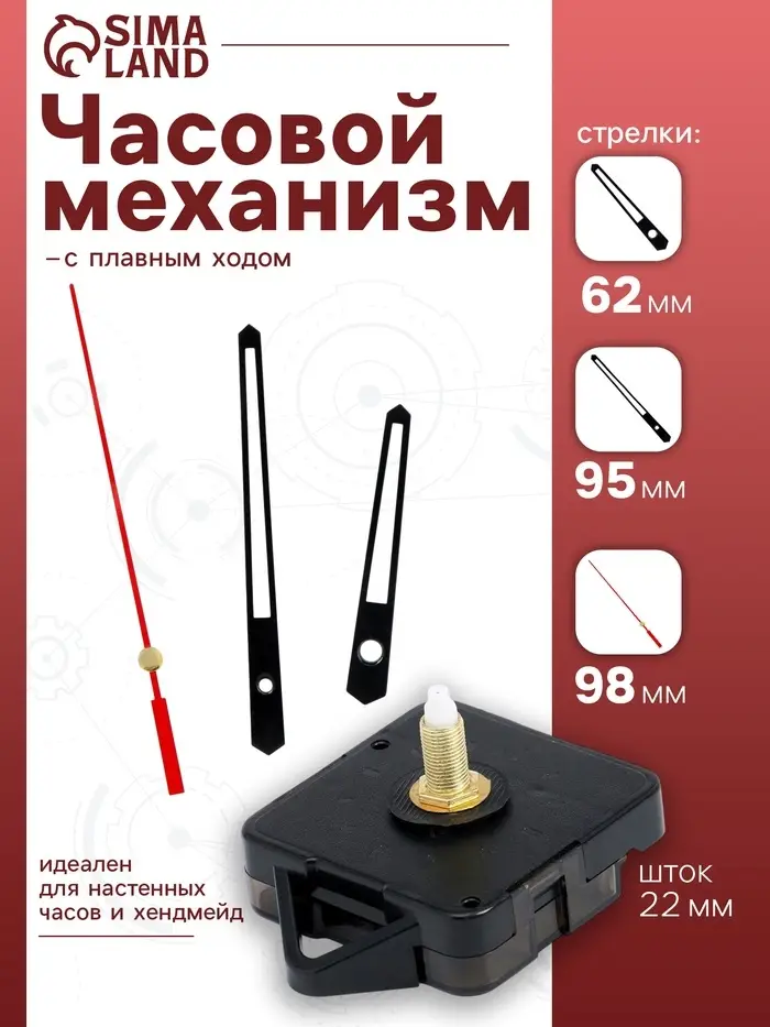 Часовой механизм со стрелками «Соломон-13», плавный ход, шток 22 мм, стрелки 62/95/98 мм