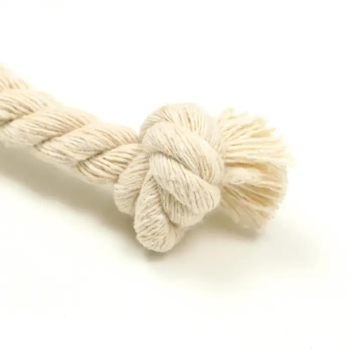 - Долговечность и безопасность: Игрушка изготовлена из натурального хлопкового каната, который не рвётся сразу и выдерживает активное жевание. На концах завязаны прочные узлы, продлевающие срок службы.
