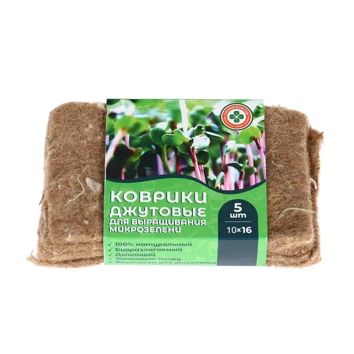 Коврик изготовлен из натурального джутового волокна, который позволит выращивать микрозелень круглый год.