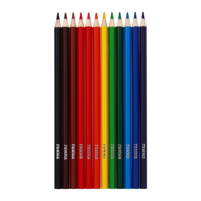 Карандаши акварельные 12 цветов, Гамма "Классические", с кистью, шестигранные, заточенные, картонная упаковка