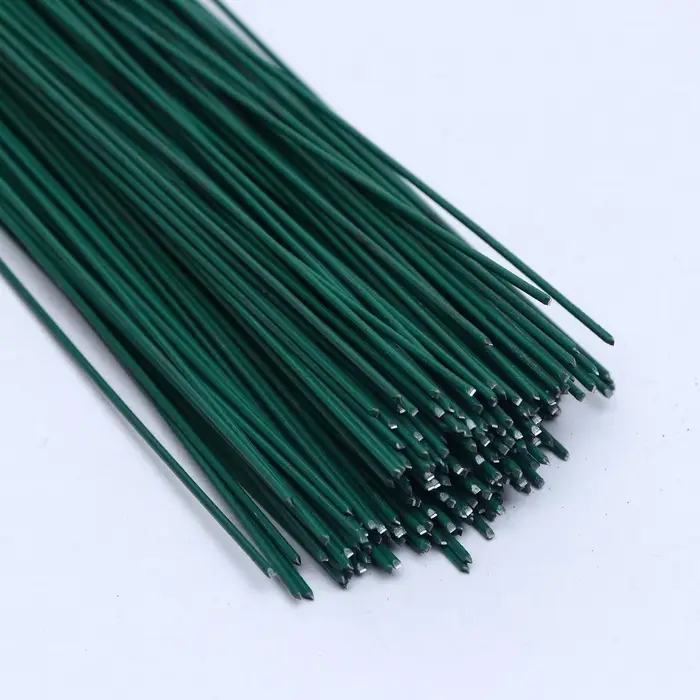 - Зелёный цвет — маскировка в композиции: Проволока окрашена в зелёный цвет, что делает её незаметной среди стеблей и листьев. Она не привлекает внимание, не нарушает эстетику букета.