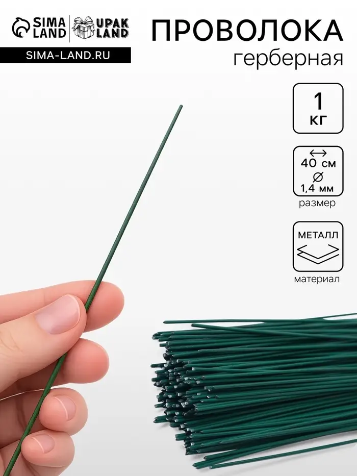 Надёжный каркас для ваших цветочных композиций! Герберная проволока зелёного цвета (длина 40 см, диаметр 1,4 мм, 1 кг) — это профессиональный флористический материал для создания каркасов, удлинения стеблей и фиксации элементов в букетах и композициях. Оптовая упаковка 1 кг обеспечивает запас для активной работы.