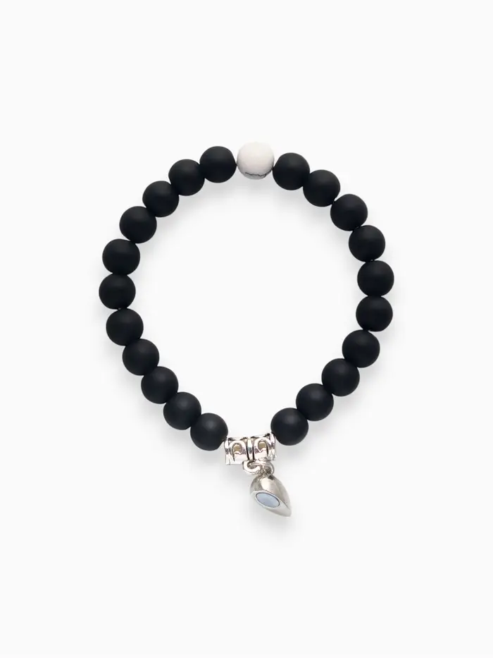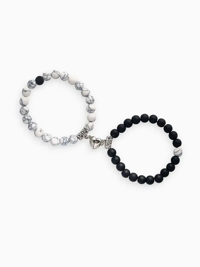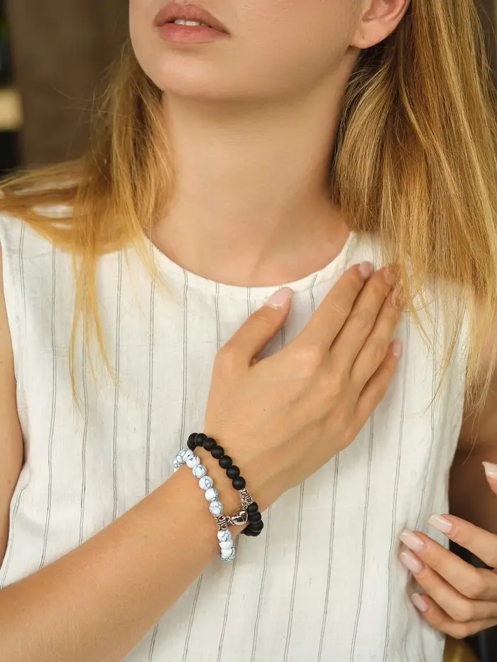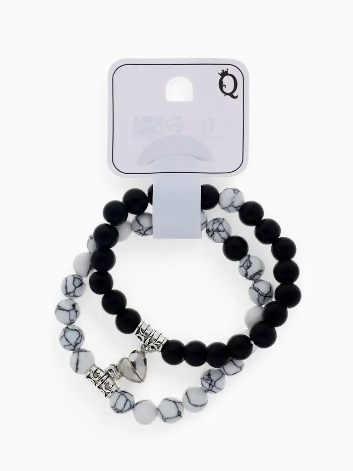 Браслеты парные «Неразлучники» на магните, сердце, чёрно-белые в серебре, d=6 см