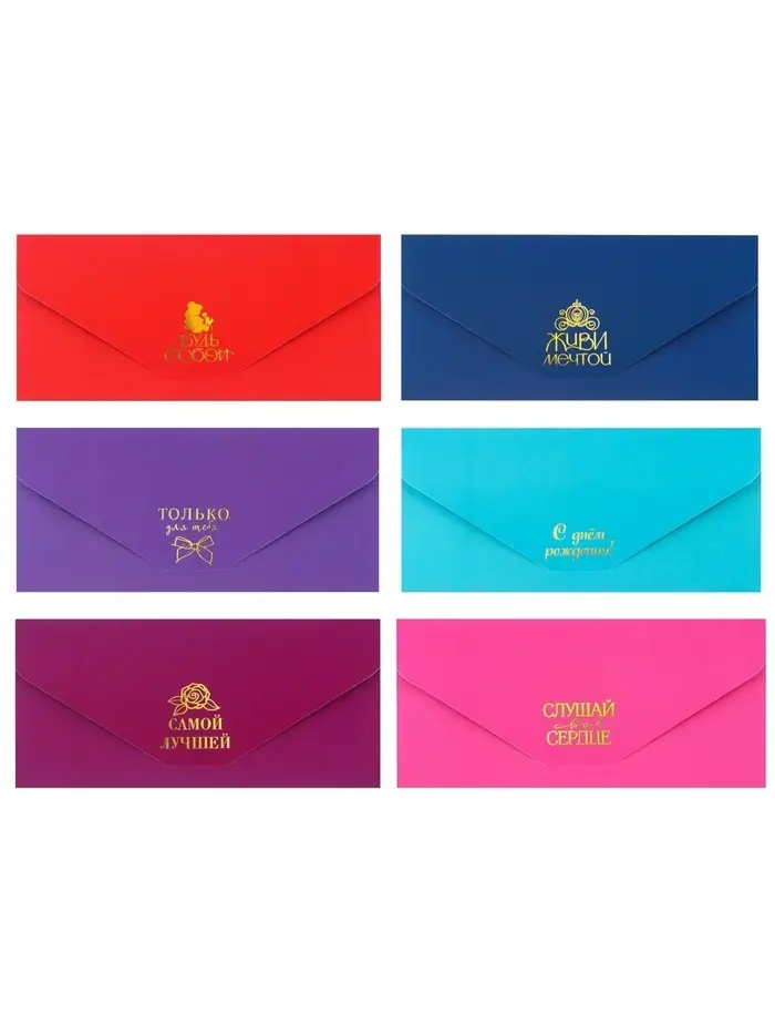Конверты для денег «Мультики», софт тач, набор 6 штук
