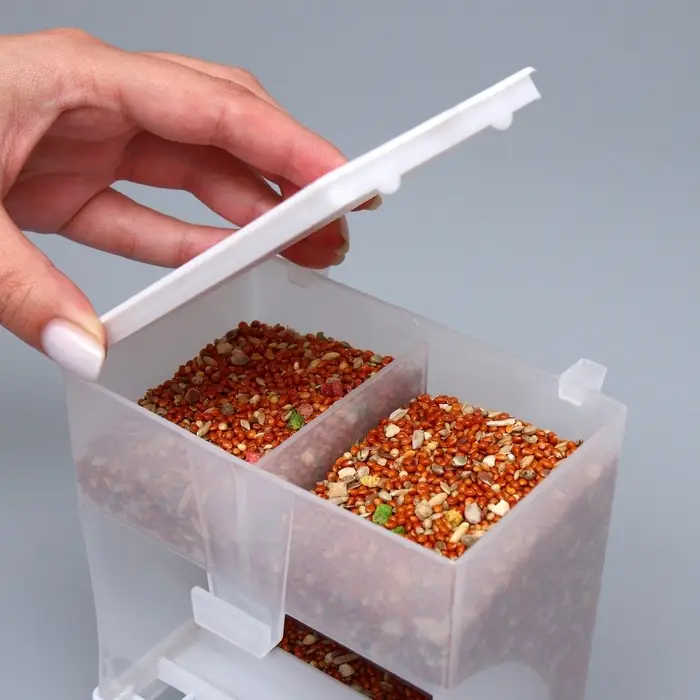 Легкость установки: Простая конструкция позволяет быстро установить кормушку в клетку или на вольере. Закрепите ее надежно, и она готова к использованию!