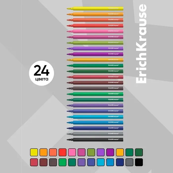 Фломастеры ErichKrause со смываемыми чернилами на водной основе. Идеально подходят как для рисования, так и для раскрашивания. Широкая палитра ярких цветов. Наконечник сохраняет форму при интенсивном использовании. Чернила на водной основе не имеют запаха, отстирываются с большинства тканей и поверхностей. Герметичный корпус из полипропилена не образует острых сколов при поломке и предотвращает высыхание чернил.