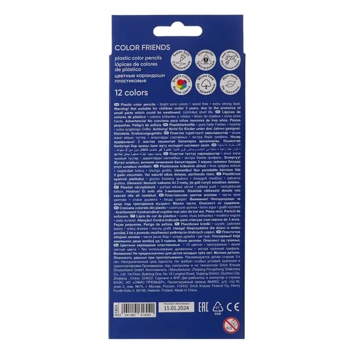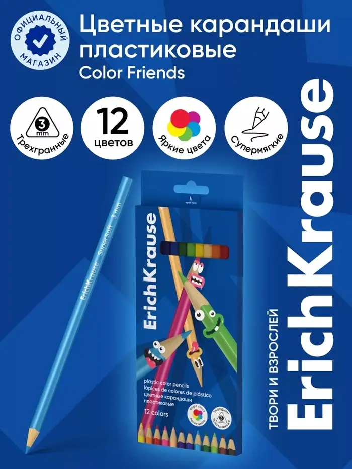 Карандаши цветные 12 цветов ErichKrause Color Friends, трёхгранные, пластиковые, с европодвесом