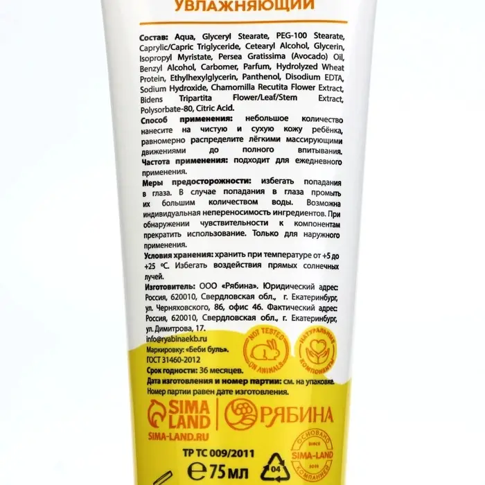 Детский крем увлажняющий, 75 мл, с экстрактом ромашки, 0+, Беби Буль