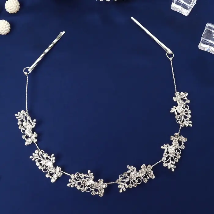 Аксессуар для волос «Леона», лепестки, 26 см, серебро