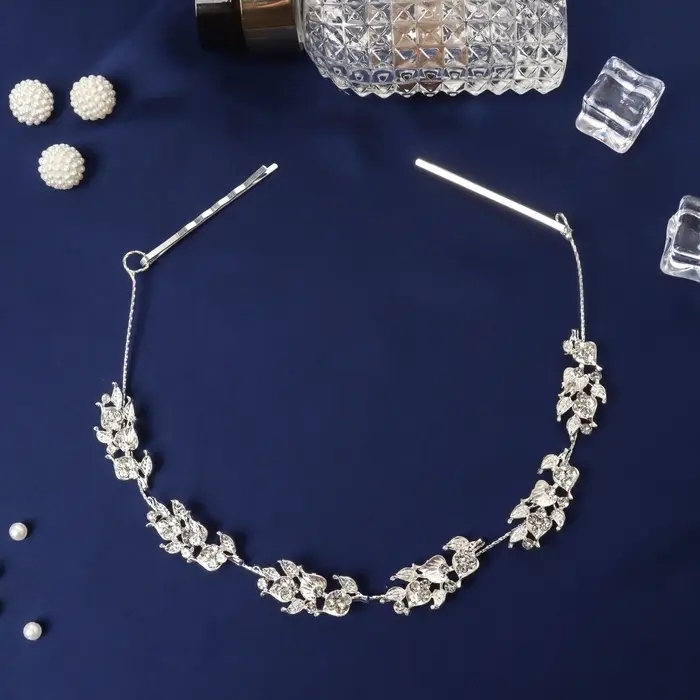 Аксессуар для волос «Леона», лепестки, 26 см, серебро