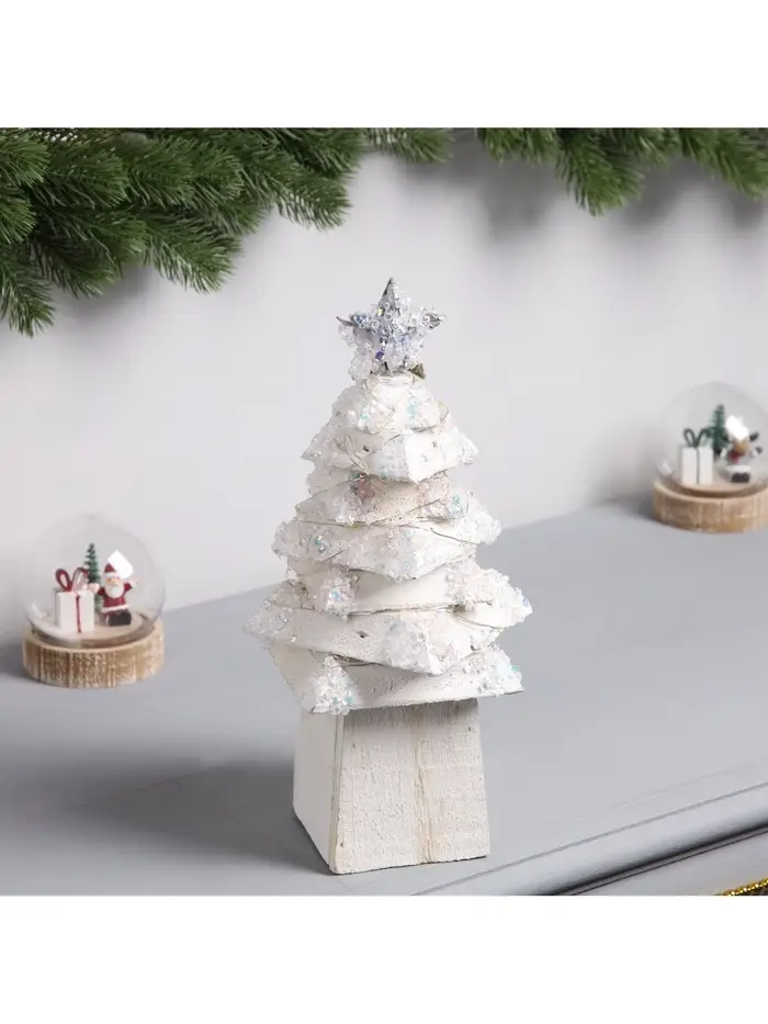 Фигура деревянная «Ёлочка белая», 27×14×14 см, 35 LED, от батареек AAx2, свечение тёплое белое