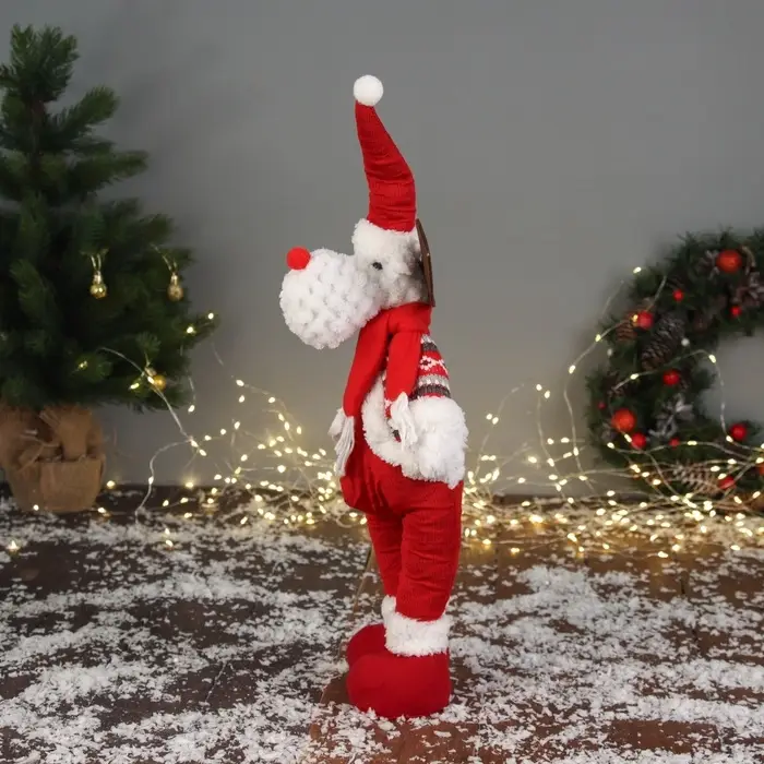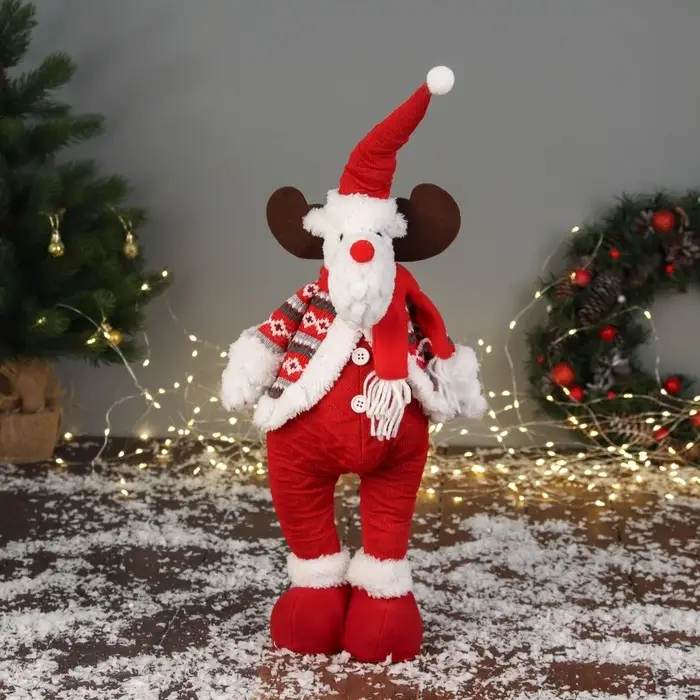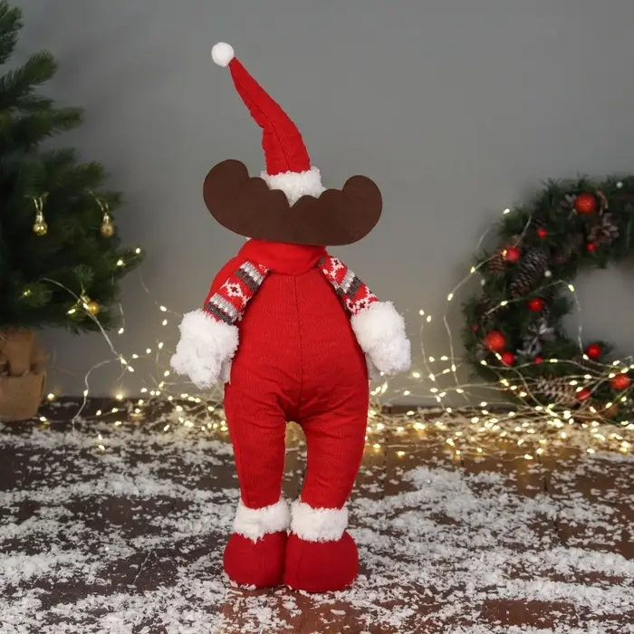 Мягкая новогодняя игрушка в виде оленя с объемными ногами и праздничным красным костюмом станет ярким украшением зимнего интерьера или оригинальным подарком на праздник. Эта фигурка выполнена в стиле новогоднего барокко, скандинавского и фьюжн, что придает ей особый шарм и универсальность для праздничного декора. Высота изделия составляет 40 см, а мягкое тело с мягконабивными частями обеспечивает приятные тактильные ощущения и долговечность. Игрушка не требует питания и не оснащена подставкой, что делает её удобной для размещения в различных пространствах.