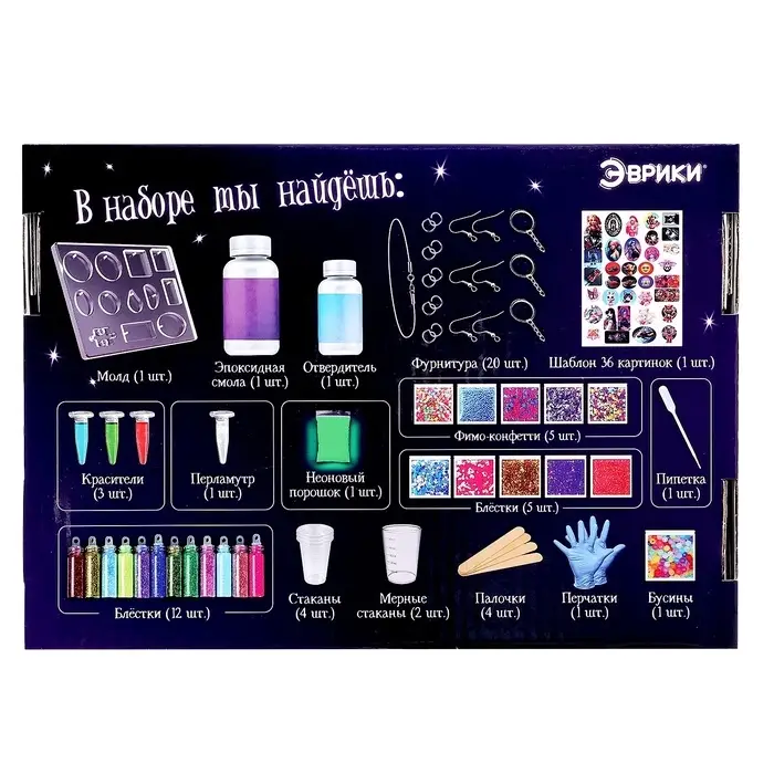 Набор для опытов «Эпоксидная смола» — идеальное решение для занятия творчеством! Ребёнок проведёт увлекательный эксперимент и создаст уникальные украшения из эпоксидной смолы!