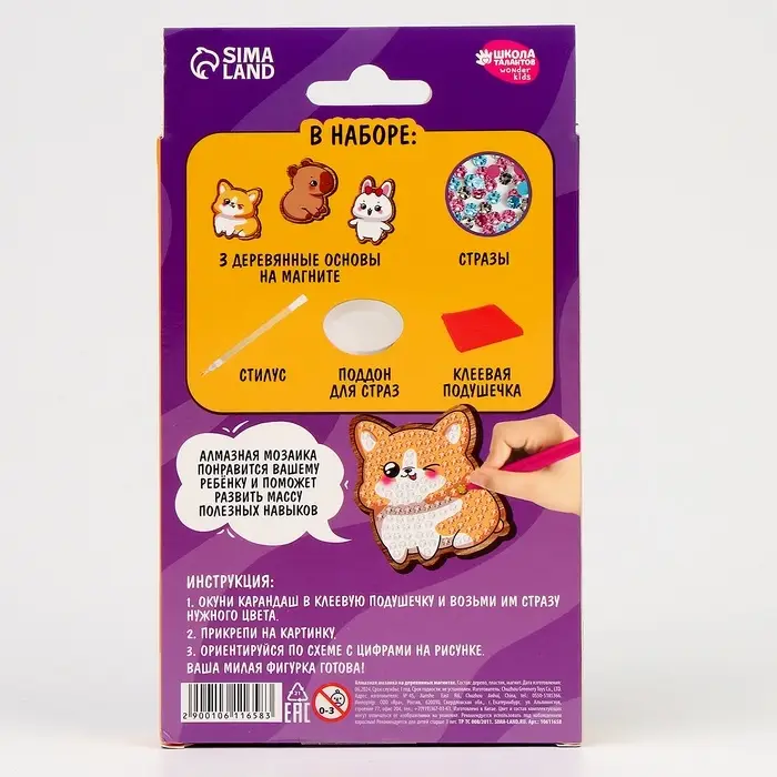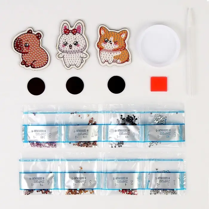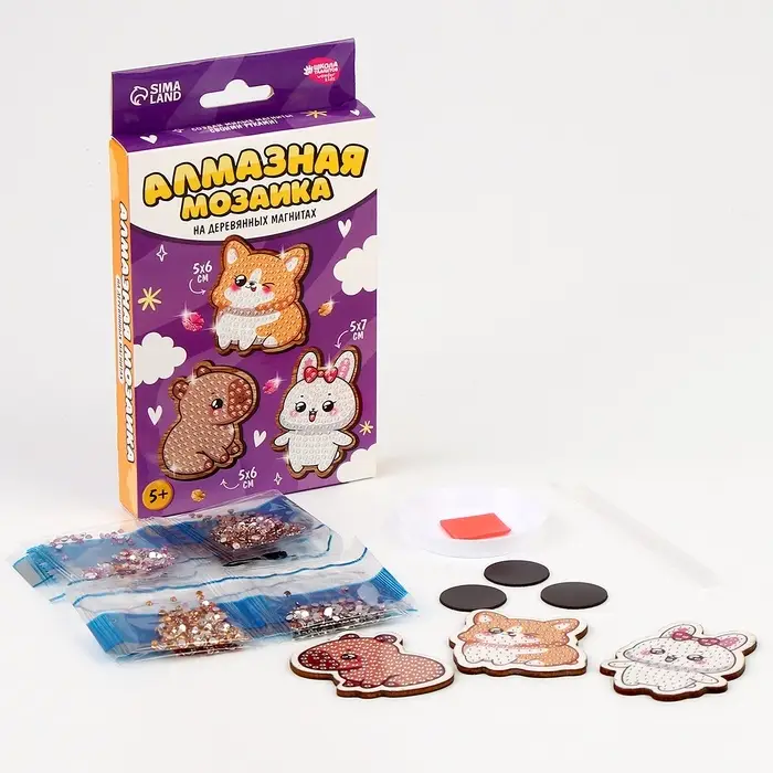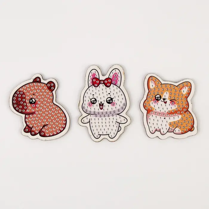 Алмазная мозаика на деревянном магните для детей «Милые зверюшки», набор для творчества