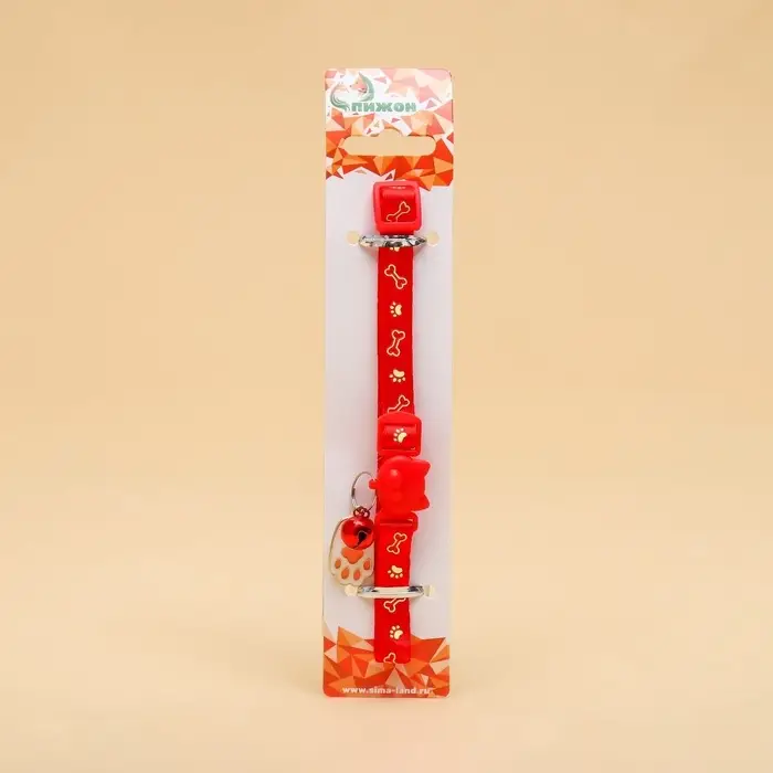Ошейник для кошек «Лапка», 30×1 см, светящийся, с бубенчиком и подвесом, полиэстер, красный