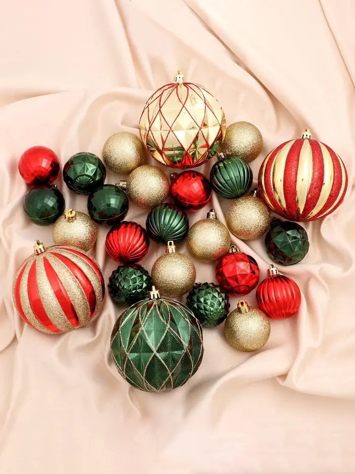 Этот набор превращает ёлку в пространство зимнего карнавала, где каждый шар работает на общий эффект. Разные размеры и разноцветная палитра добавляют дереву жизни и движения, но остаются в рамках логичного и стильного декора. Используйте игрушки как основу или как часть уже готовой композиции — они одинаково хорошо работают в разных интерьерах и тематиках оформления.