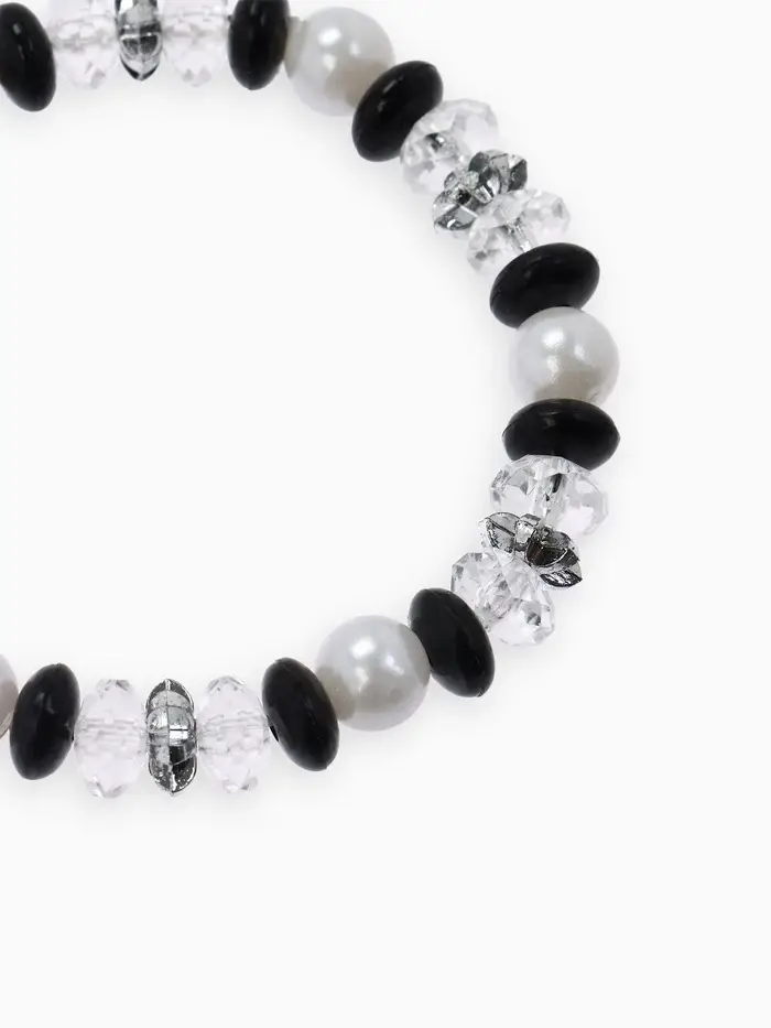 - Одна нить с пластиковыми бусинами в классическом чёрно-белом сочетании.