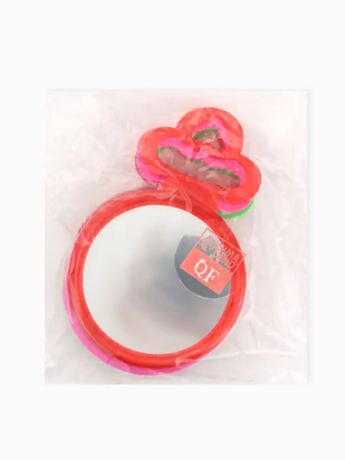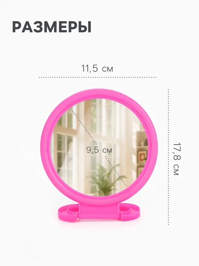 Компактное круглое зеркало с диаметром 9,5 см и разноцветной рамкой объединяет настольный и подвесной варианты установки. Поворотный механизм обеспечивает удобное изменение угла отражения, а пластиковый корпус поддерживает лёгкость и прочность конструкции. Универсальный дизайн подходит для разных комнат — от ванной до прихожей.