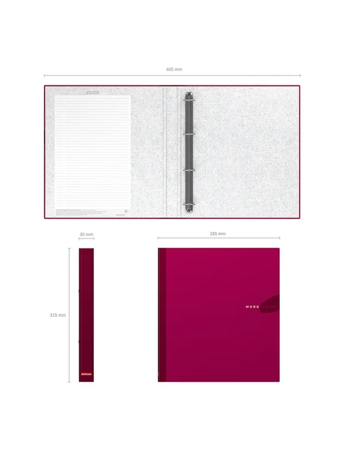 Папка на 4 кольцах А4, ErichKrause Work inside, 35 мм, 1750 мкм, ламинированная, твердая обложка, бордовая
