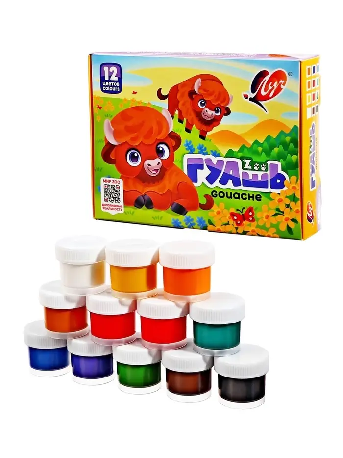 Гуашь 12 цветов × 15 мл ZOO поможет вашему ребёнку создавать красивые яркие картинки, выдумывать невероятные сюжеты и воплощать их в реальность, развивая цветовое восприятие, зрительную память, воображение, мелкую моторику пальцев, ассоциативное, аналитическое и творческое мышление.
