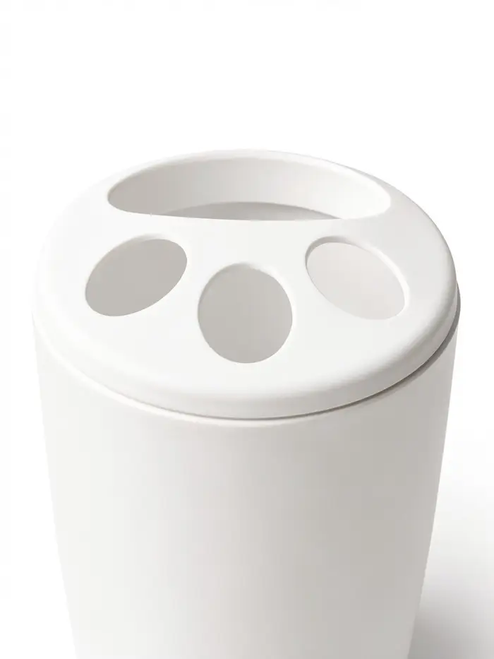 Подставка сделана в соответствии с российскими стандартами качества, так что можно не беспокоиться о ее безопасности. Она не впитывает запахи, а устойчивое широкое донышко исключит случайные падения. Съемная верхняя крышка с отверстиями поможет щеткам не соприкасаться щетинками.