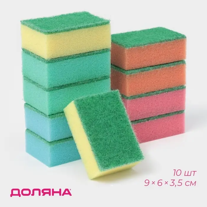 Набор губок для посуды с чистящим слоем Доляна «Макси», 9×6×3.5 см, 10 шт.
