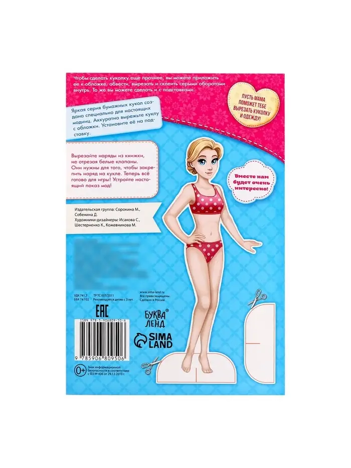 - Картонная кукла и набор нарядов для вырезания.