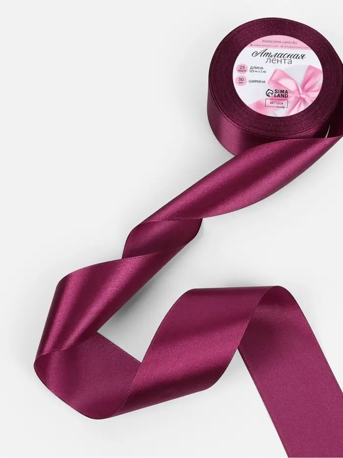 Лента атласная, 50 мм × 23 ± 1 м, цвет баклажановый №252