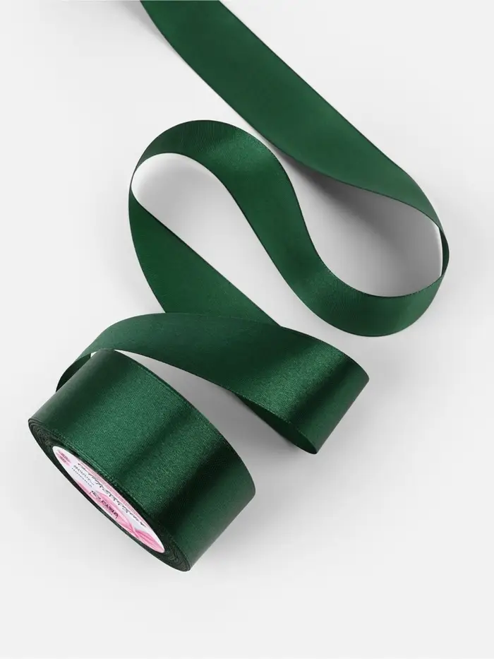 Откройте для себя великолепие тёмно-зелёной атласной ленты шириной 40 мм, созданной для воплощения разнообразных творческих идей. Длина ленты 23 метра предлагает безграничные возможности для украшений и декоративных проектов. Изготовленная из полиэстера, она сочетает в себе прочность и изысканный блеск атласной текстуры.