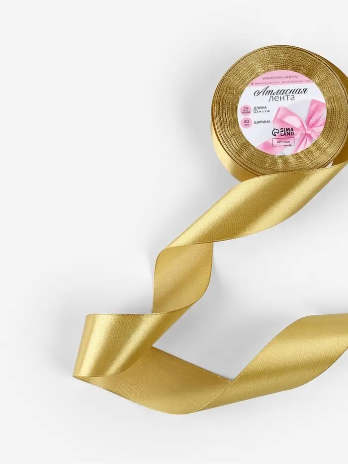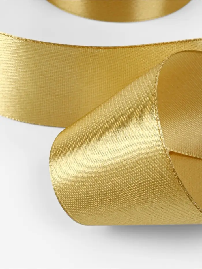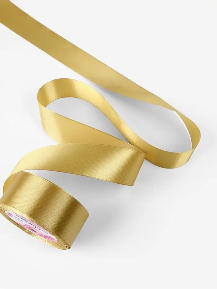 Золотистая атласная лента станет отличным решением для создания стильной упаковки подарков и визуального обогащения декораций. Она также прекрасно подходит для оформления одежды, аксессуаров и флористики, привнося в проекты тёплую гармонию и элегантность.