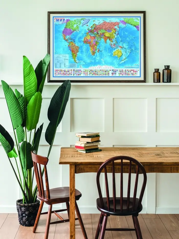 - Подходит для любого интерьера – стильный дизайн и насыщенные цвета сделают карту украшением вашего дома или офиса.