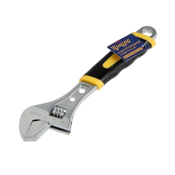 Ключ разводной ТУНДРА, 2 варианта зажима, гайки 4-6-12 мм, 2К рукоятка, 200 мм