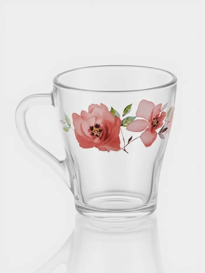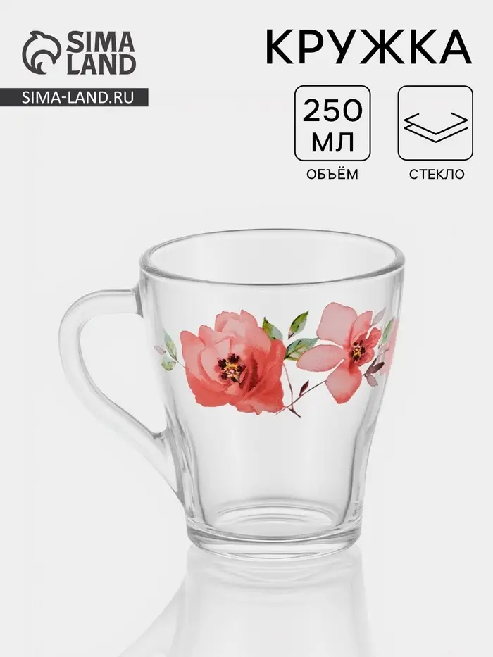 Кружка ОСЗ «Акварельные цветы», 250 мл, стекло, прозрачная, рисунок МИКС