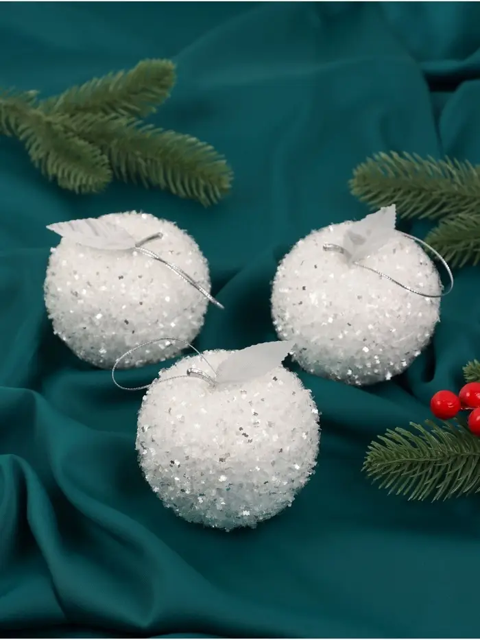 Ёлочные игрушки 3 шт. «Яблочко» 7×7.5 см, белый