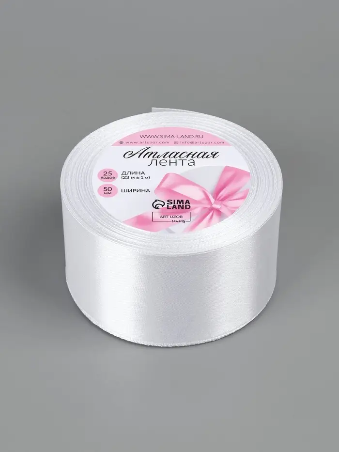 Лента атласная, 50 мм, 23±1 м, белая №01