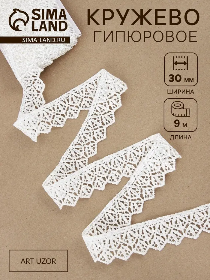 Кружево гипюровое, 30 мм, 9±0.5 м, цвет белый