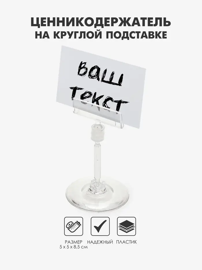 Ценникодержатель на круглой подставке, пластик, ножка 5 см, 5×5×8.5 см, прозрачный