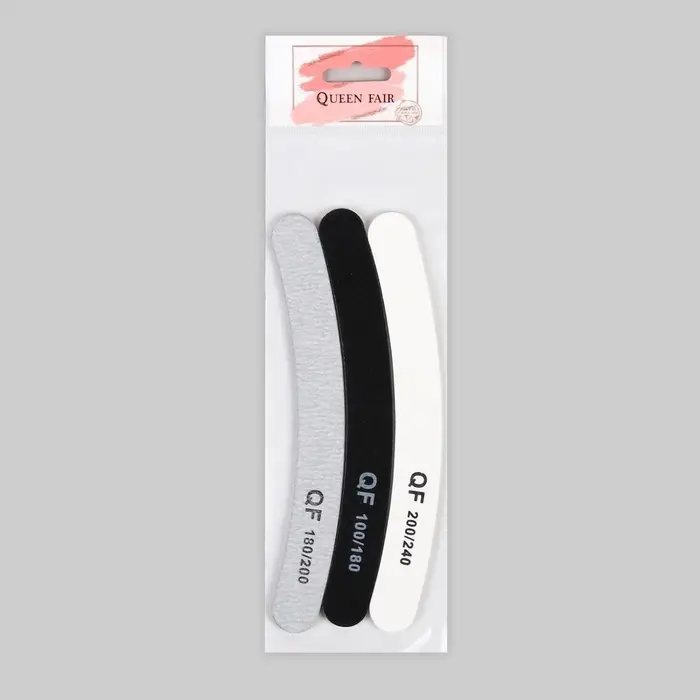 Набор пилок для ногтей, бумеранг, 100/180, 180/200, 200/240 грит, 18 см, 3 шт.