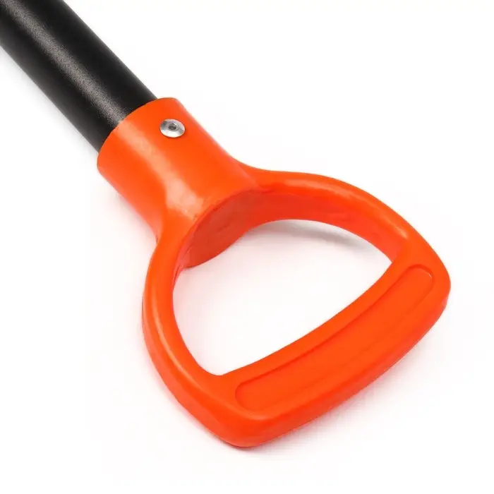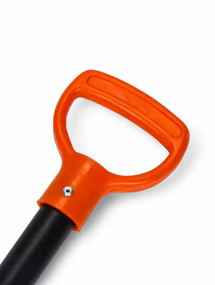- Эргономичная рукоятка: на конце черенка закреплена ручка. Она предотвращает соскальзывание ладоней и повышает контроль над инструментом во время работы.