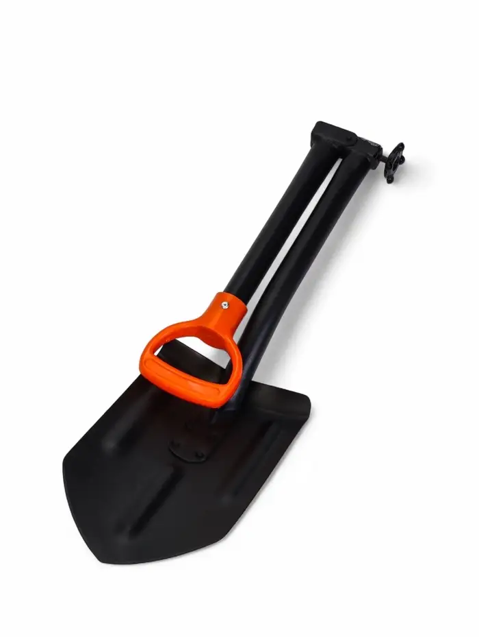 - Складная конструкция черенка: в сложенном виде лопата занимает минимум места, что оптимально для хранения в автомобиле.