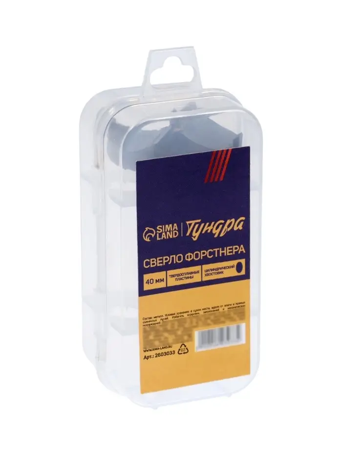 Сверло Форстнера ТУНДРА, твердосплавные пластины, цилиндрический хвостовик, 40 мм