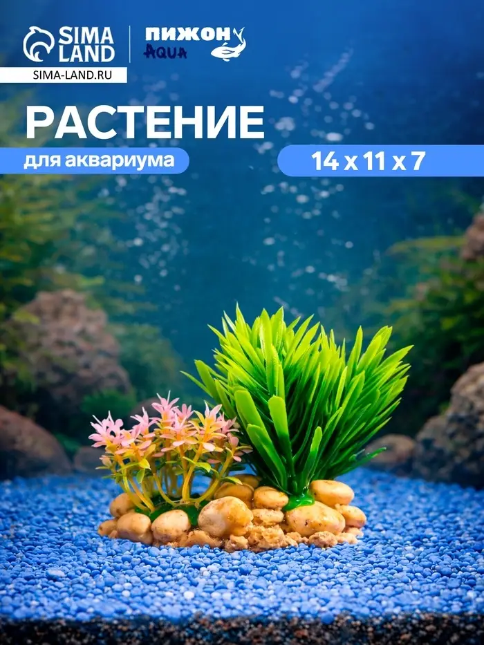 Растение искусственное аквариумное, на подставке под камень, 14×11×7 см
