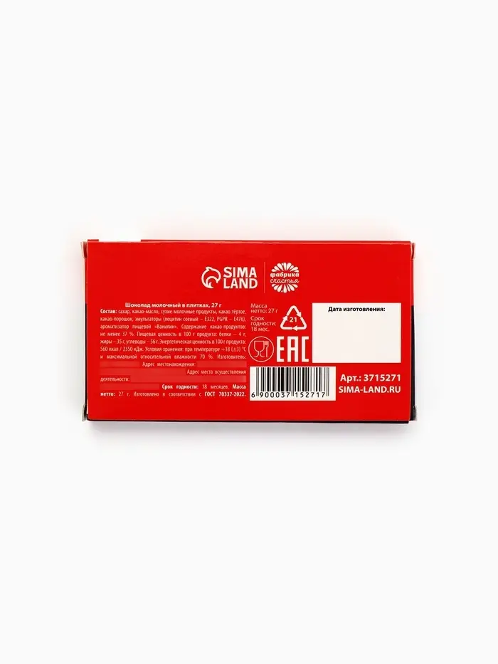 Мини-шоколад для макси-настроения! Молочный шоколад в ультраприкольной упаковке — чтобы поднять себе дух за 27 граммов счастья! Добавьте немного юмора и сладости в свою жизнь! Выбирайте свою мини-шоколадку и наслаждайтесь моментом!