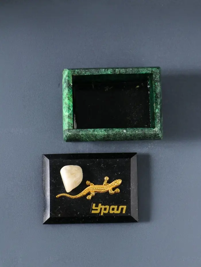 Шкатулка для украшений «Урал» прямоугольная, змеевик, с декоративным камнем, 7.5×5.5×5.5 см