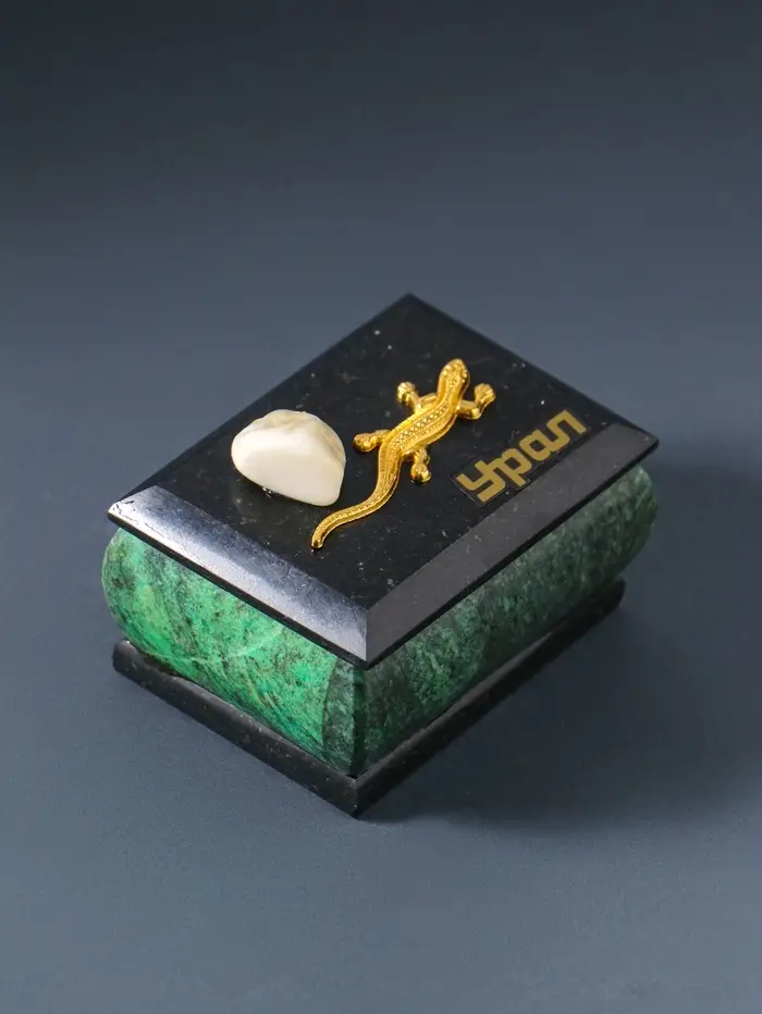 Шкатулка для украшений «Урал», змеевик, с декоративным камнем, 6.5×6.5×5.5 см