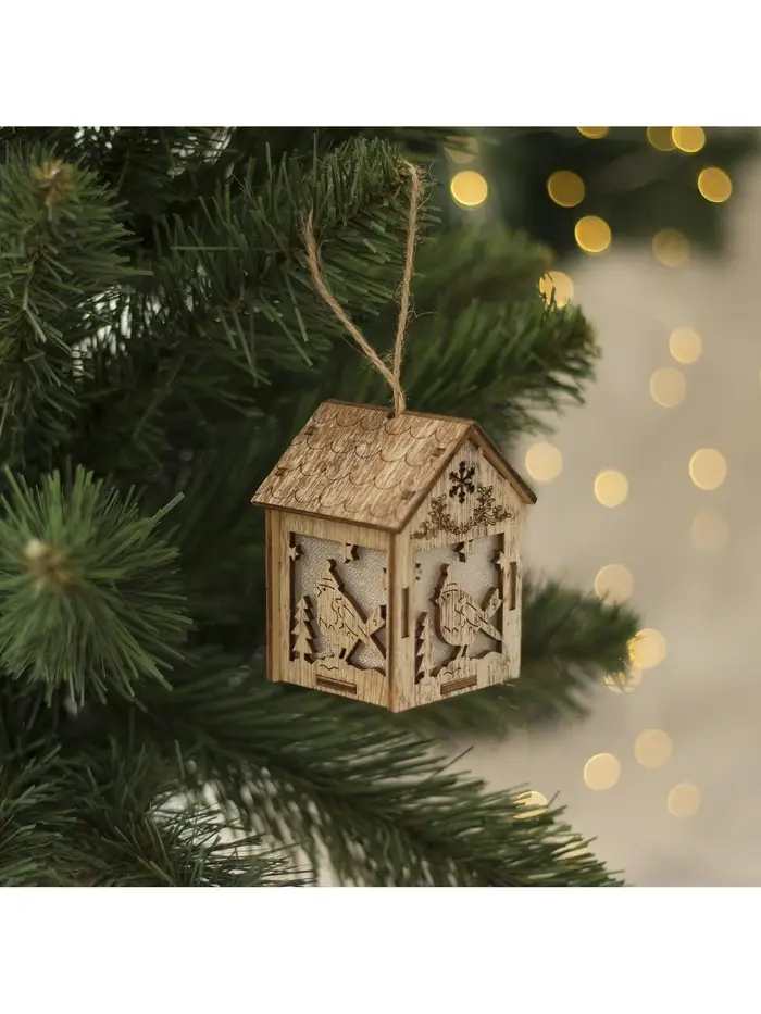 Ёлочная игрушка «Домик с птицей», 8×5×6 см, 1 LED, от батареек, свечение тёплое белое