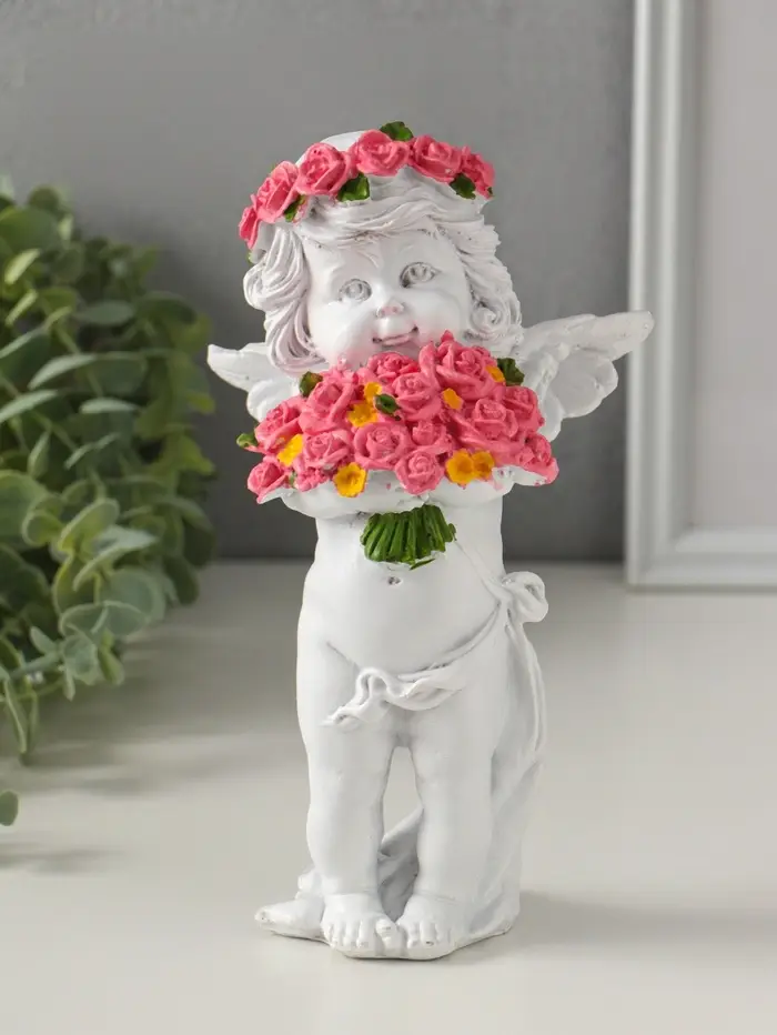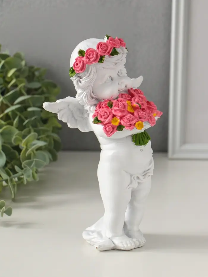 Фигура «Ангел с розами», 13×9×22 см
