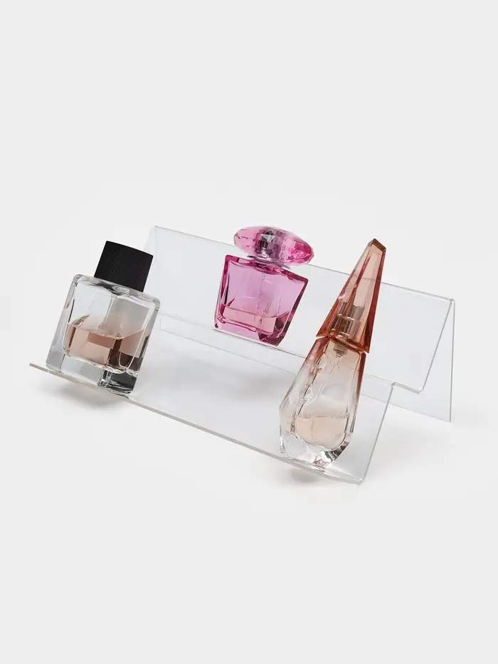Функциональные особенности: Двухуровневая структура обеспечивает оптимальную видимость каждого ряда товаров на витрине. Прозрачный материал не отвлекает покупателя от объекта презентации. Компактные размеры позволяют эффективно использовать ограниченное пространство торговых прилавков, обеспечивая аккуратную и профессиональную демонстрацию флаконов или мелких предметов.